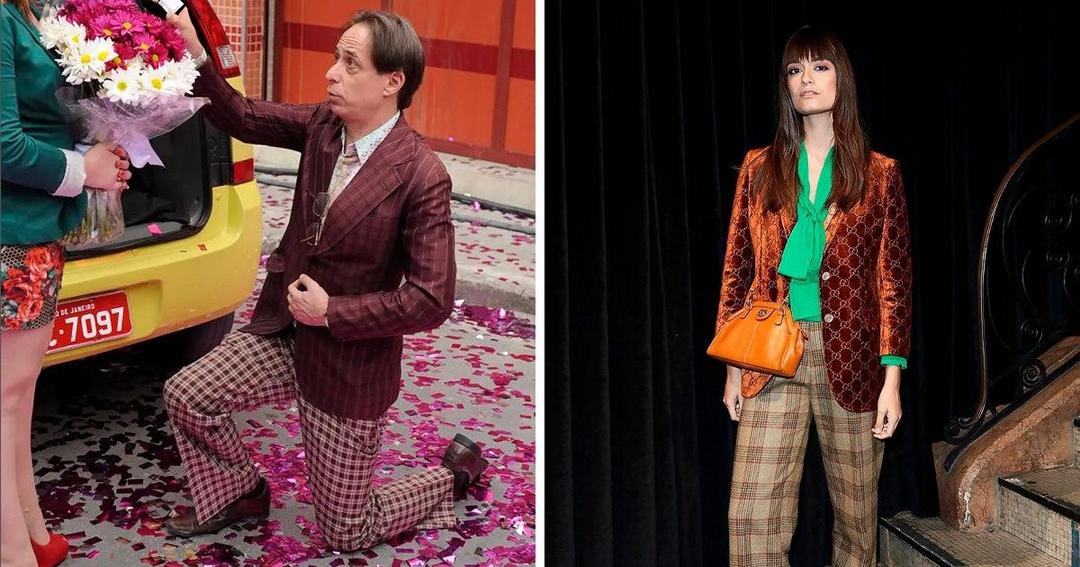 Há um tempo viralizou na internet imagens comparando o look fino de Agostinho Carrara, personagem da Grande Família, com looks da luxuosa marca Gucci.